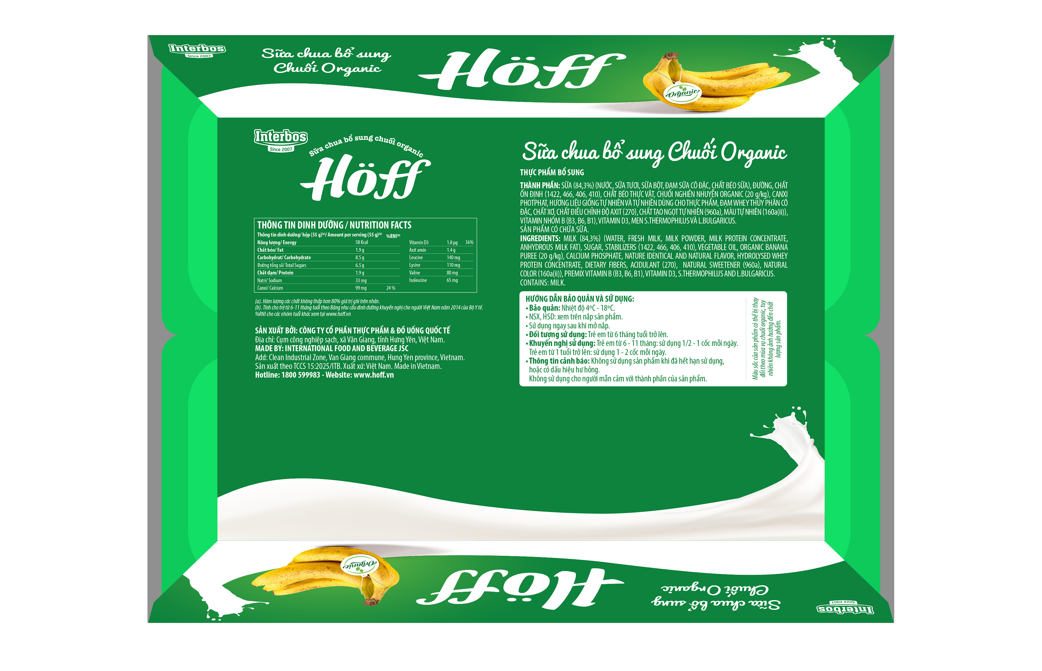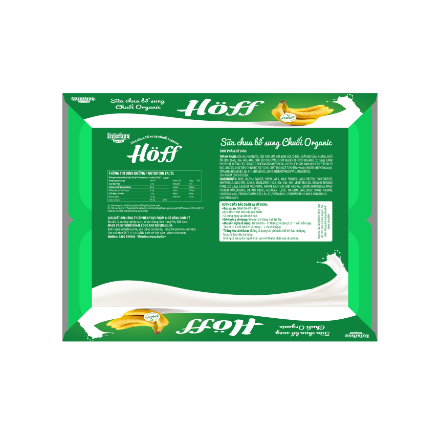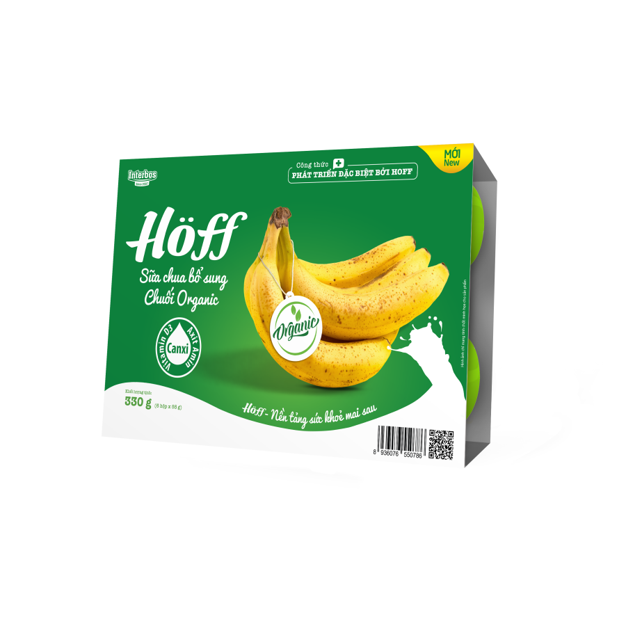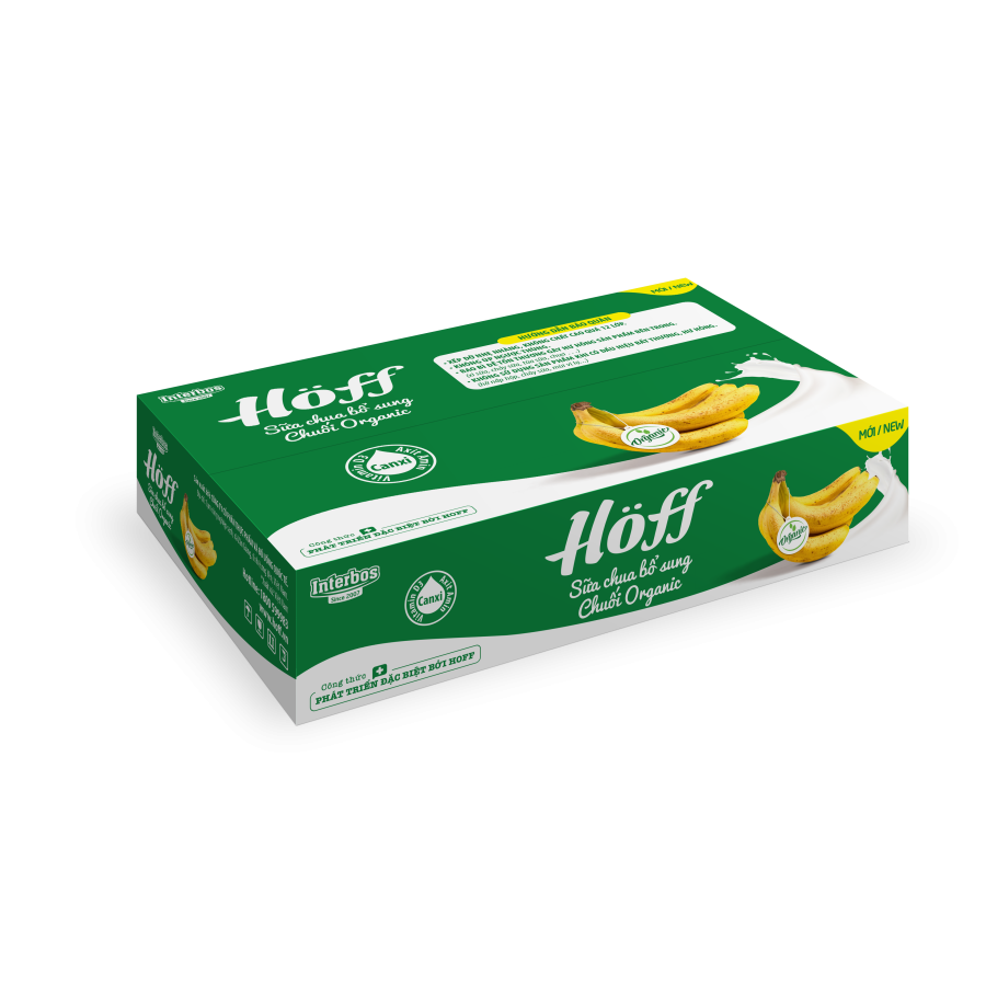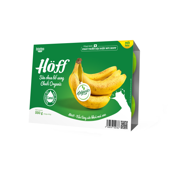 Sữa chua Chuối Organic Hoff là dòng sản phẩm sữa chua trẻ em cao cấp của Hoff được tư vấn công thức dinh dưỡng bởi các chuyên gia dinh dưỡng tại viện Dinh Dưỡng Quốc Gia. Sản phẩm sử dụng nguồn nguyên liệu Chuối Organic, giám sát bởi tiêu chuẩn hữu cơ được công nhận trên toàn thế giới cùng nguồn dưỡng chất đa dạng, phù hợp với trẻ em Việt Nam giúp trẻ phát triển toàn diện về thể chất và trí tuệ.